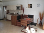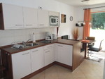 Die Einbauküche ist ausgestattet mit Geschirrspüler, Mikrowelle, Cerankochfeld, Kühlschrank, Kaffeemaschine, Wasserkocher sowie Toaster und lässt keine Wünsche offen. Direkt neben der Küche befindet sich eine Essecke für 4 Personen.